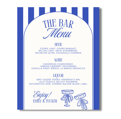 Fully customizable bar menus designed in your preferred size, style, and color palette.