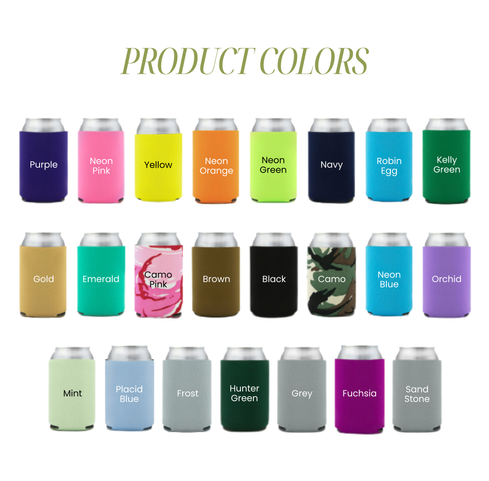 A party staple! Our regular can koozies are available in a variety of colors and printed with a one-color imprint. Other colors may be available upon request.